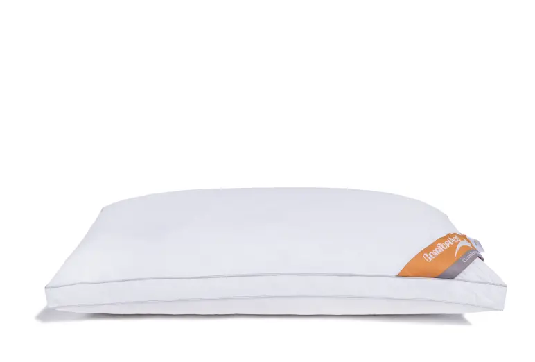 Filled with down-like microfiber, this pillow feels as soft as natural down. It is breathable and light. And has very good fluffiness.