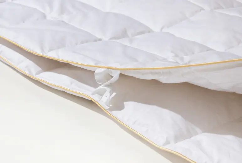 The feather- and down-tight cover material offers extra protection, preventing the ingress of mites. Even if you are allergic to house dust or are asthmatic. This has been demonstrated by scientific studies. All versions are equipped with snaps (can be combined with all versions).