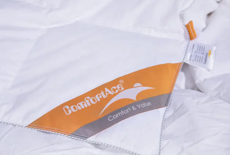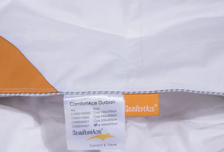 Filling: The filling of our duvet consists of natural 50% white duck down and 50% white duck feather. It is particularly breathable and light with good warmth. The bedding of the ComfortAce signals the suitability for dust mite allergy sufferers.